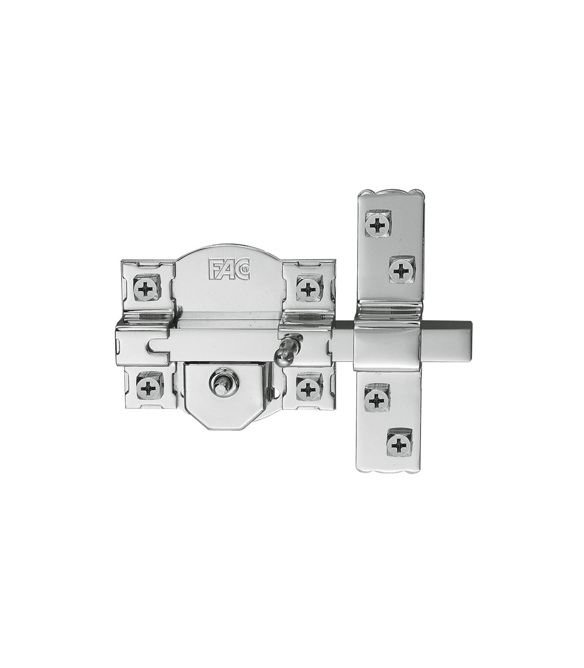 Llave exterior y botón interior. Barra en acero calibrado 14 mm. Placa de acero 2 mm. Cerradero en acero 3 mm. Cilindro pera.