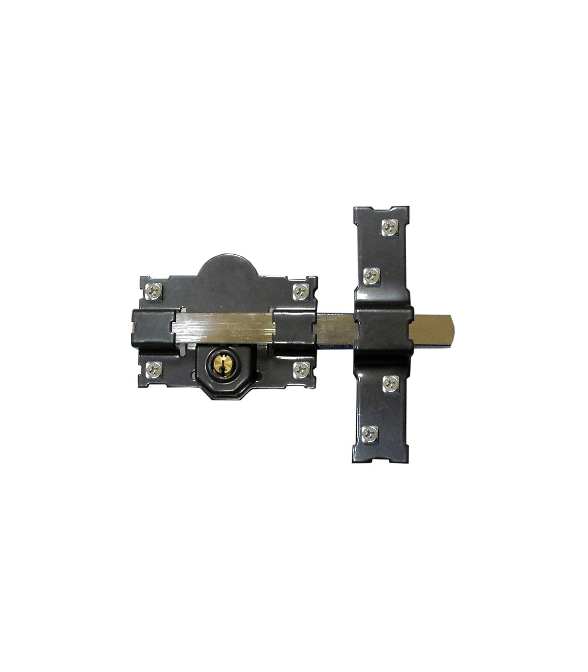 Accionado interior y exteriormente por llave quedando siempre la barra fija. Barra de acero calibrado 18 mm. Placa acero 2 mm. Cerradero acero 3 mm. Cilindro redondo. 3 llaves dentadas.