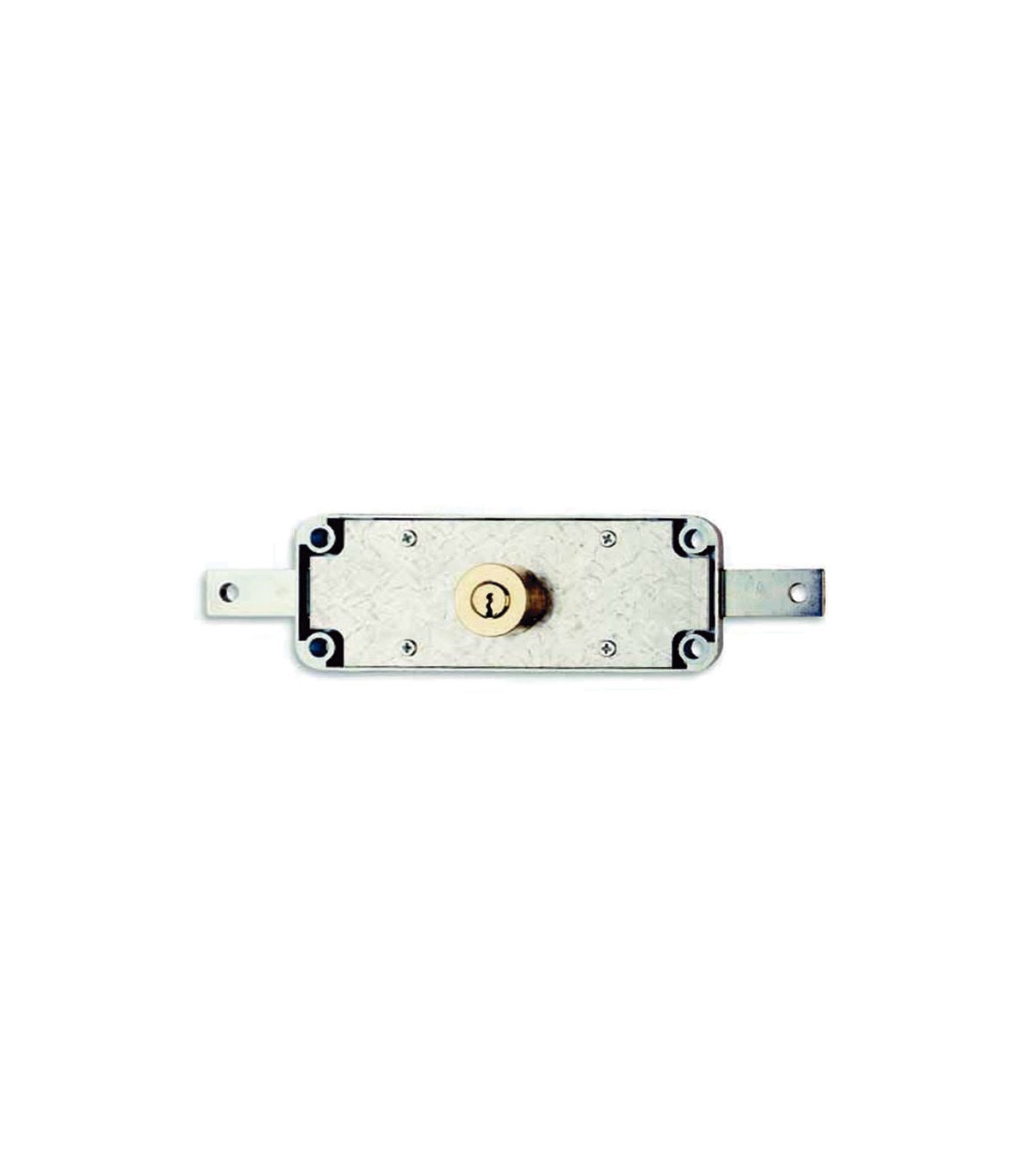 Para puertas enrollables y basculantes. Caja de zamac y bombillo latón ø 28 mm. 3 llaves. 145xh43 cm.
