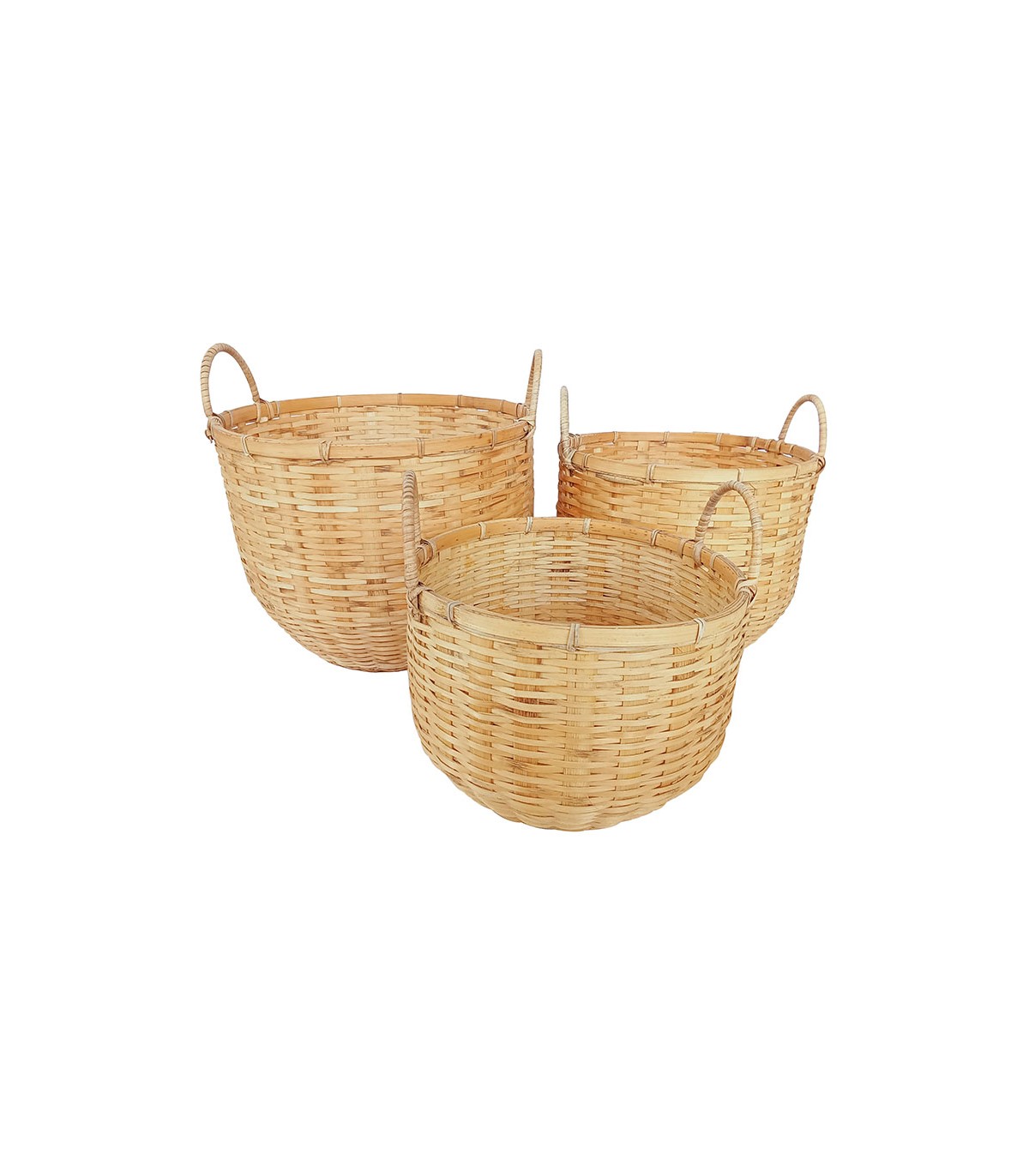 Juego 3 unidades forma U con asas. Bambú natural trenzado.