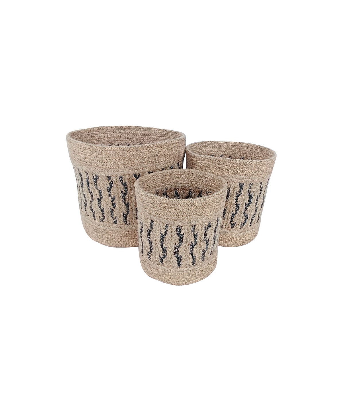Juego 3 unidades cilíndricas. Yute blanco y negro.