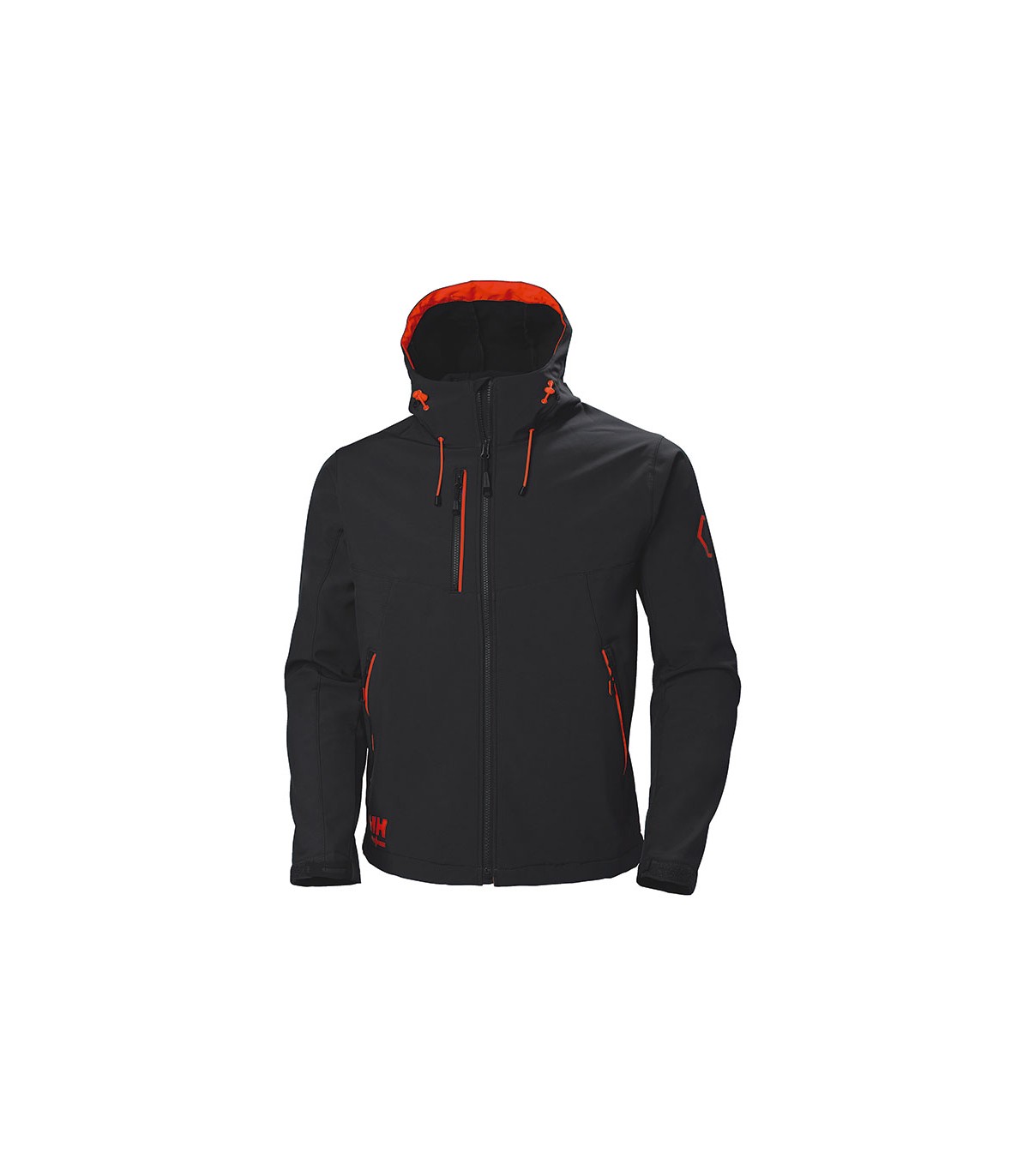 Soft-shell impermeable. Membrana impermeable ligera Helly Tech® Professional 3 capas. Refuerzos de tejido Cordura®. 92% poliéster, 8% elastano. Color negro.