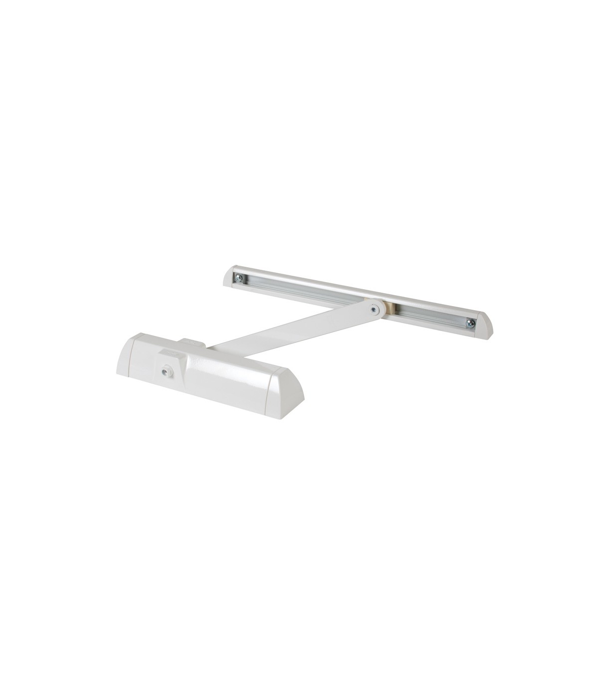 Funcionamiento hidráulico accionado por leva. Velocidad de cierre ajustable en 2 zonas. No guarda mano. Incluye guía deslizante. Puertas hasta 60 kg. Ancho puerta 950 mm.