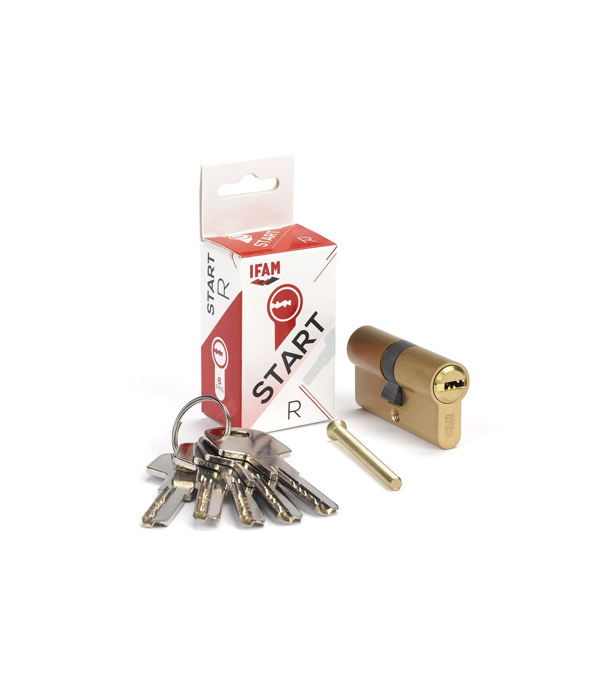 Cilindro con perfil europeo. Fila de 6 pitones de acero. Sistema antiganzúa. Sistema de pitones antitaladro. Con 5 llaves de latón niqueladas. Llaves iguales. KA01 diferente código de llave que KA02.