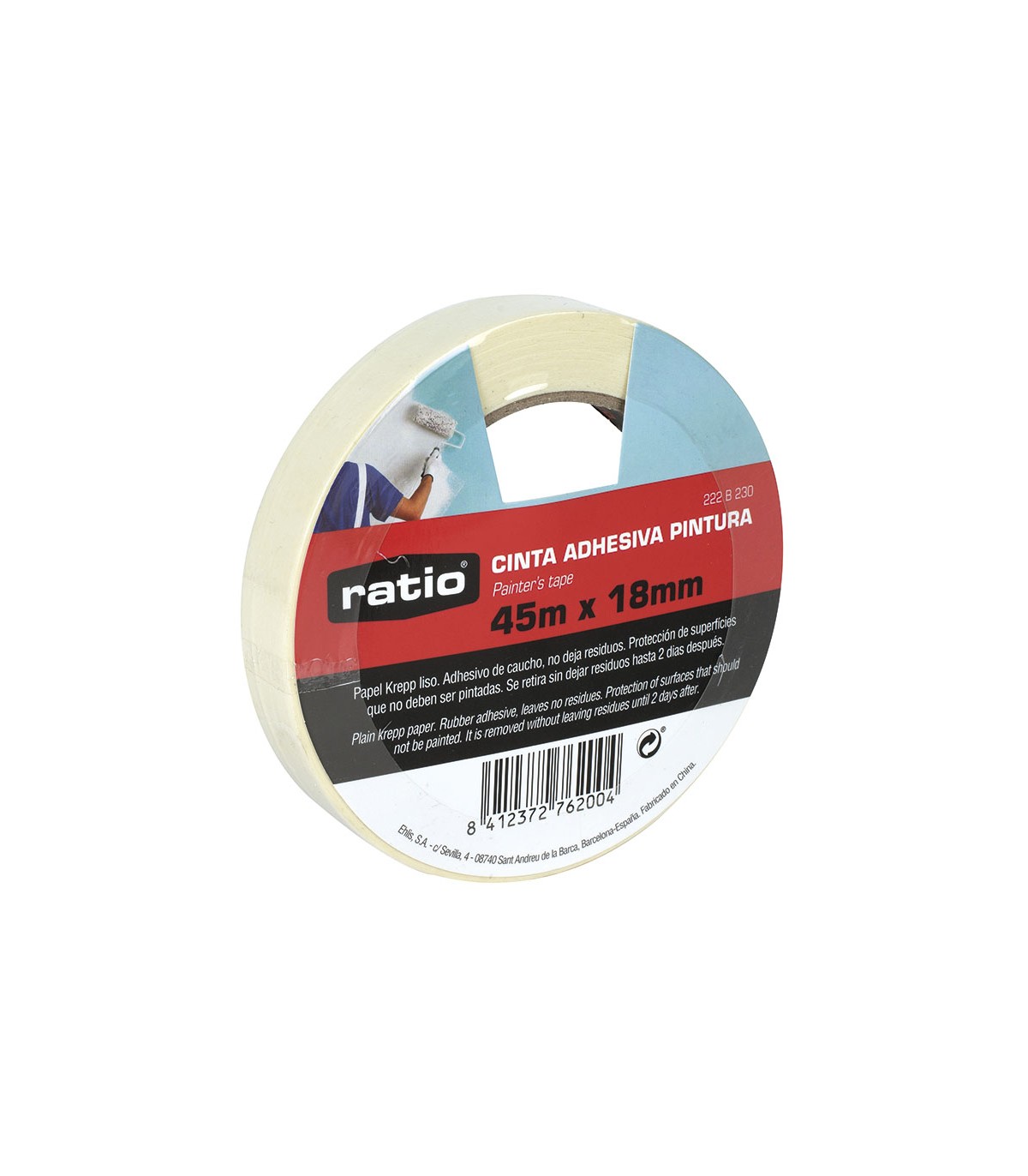 Soporte papel Krepp liso con adhesivo de caucho. Ideal para protección de superficies que no deben ser pintadas. Se retira sin dejar residuos hasta 2 días después de su aplicación.