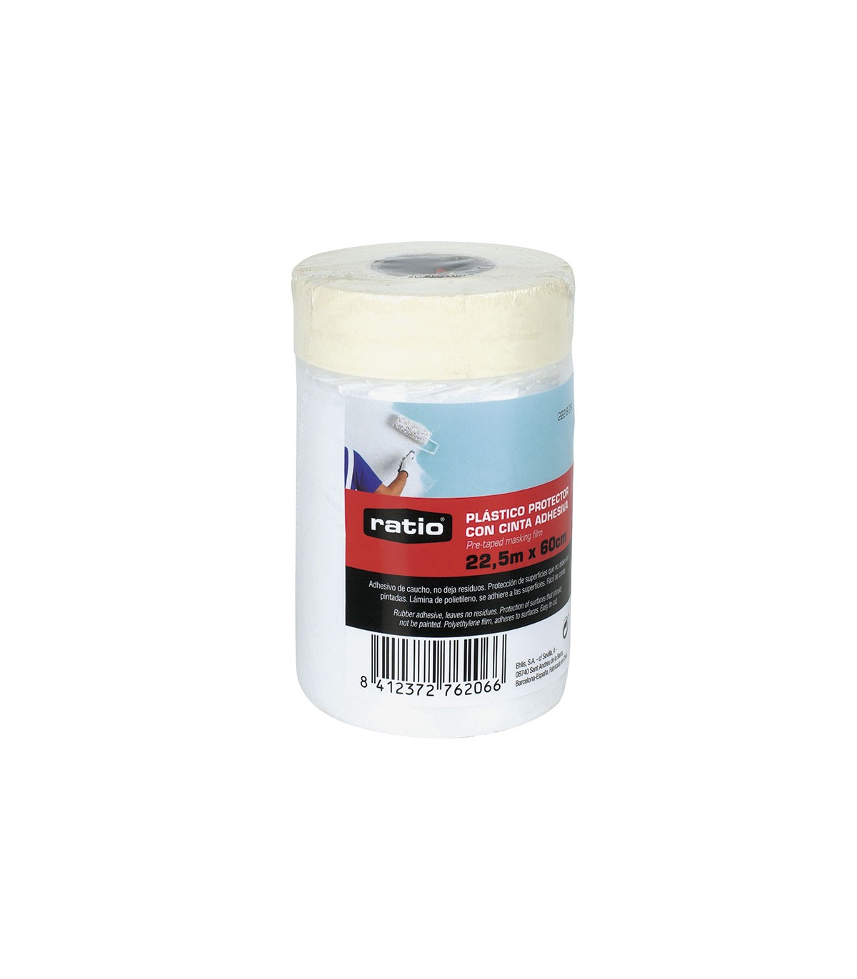 Soporte papel Krepp liso con adhesivo de caucho. Ideal para protección de superficies que no deben ser pintadas. Lámina de polietileno que se adhiere a las superficies. Fácil de cortar.