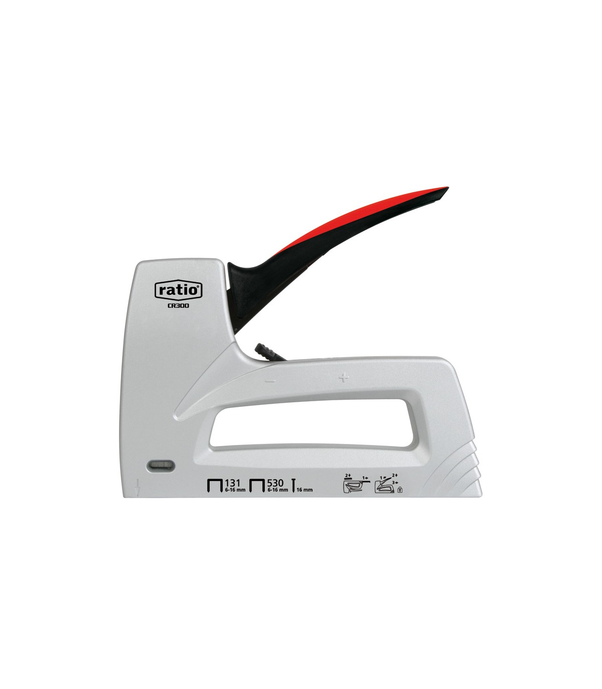 Armazón metálico. Regulador de potencia. Sistema de bloqueo y seguridad en maneta. Ergónomica y confortable. Incluye 300 grapas 530 (6-8 mm).