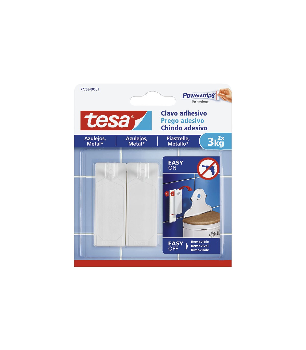 Sin necesidad de hacer agujeros. Enganche fácil y sin dejar residuos al quitarlos. Color blanco. Blíster 2 unid.