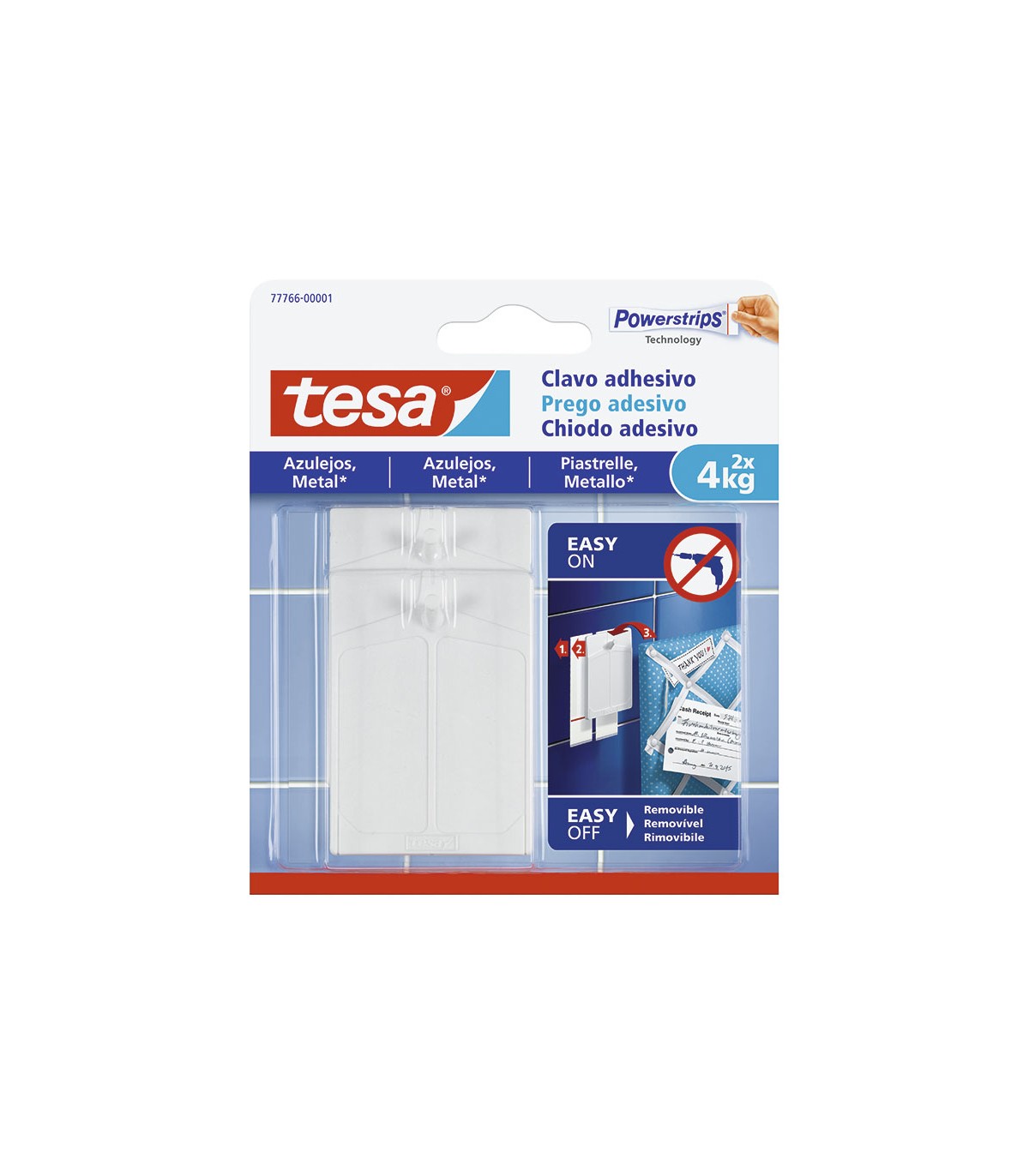 Sin necesidad de hacer agujeros. Enganche fácil y sin dejar residuos al quitarlos. Color blanco. Blíster 2 unid.
