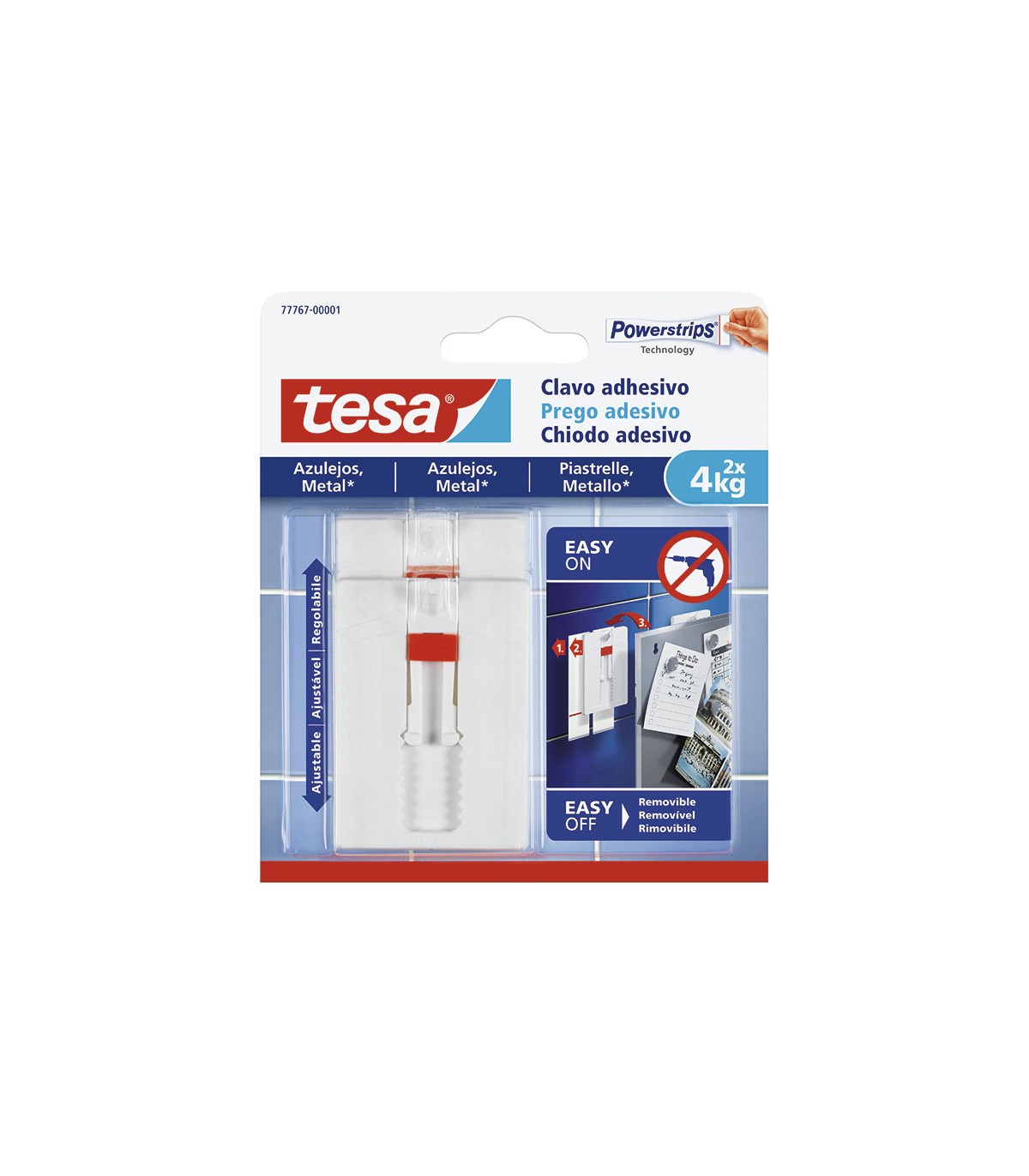 Sin necesidad de hacer agujeros. Enganche fácil y sin dejar residuos al quitarlos. Color blanco. Blíster 2 unid.