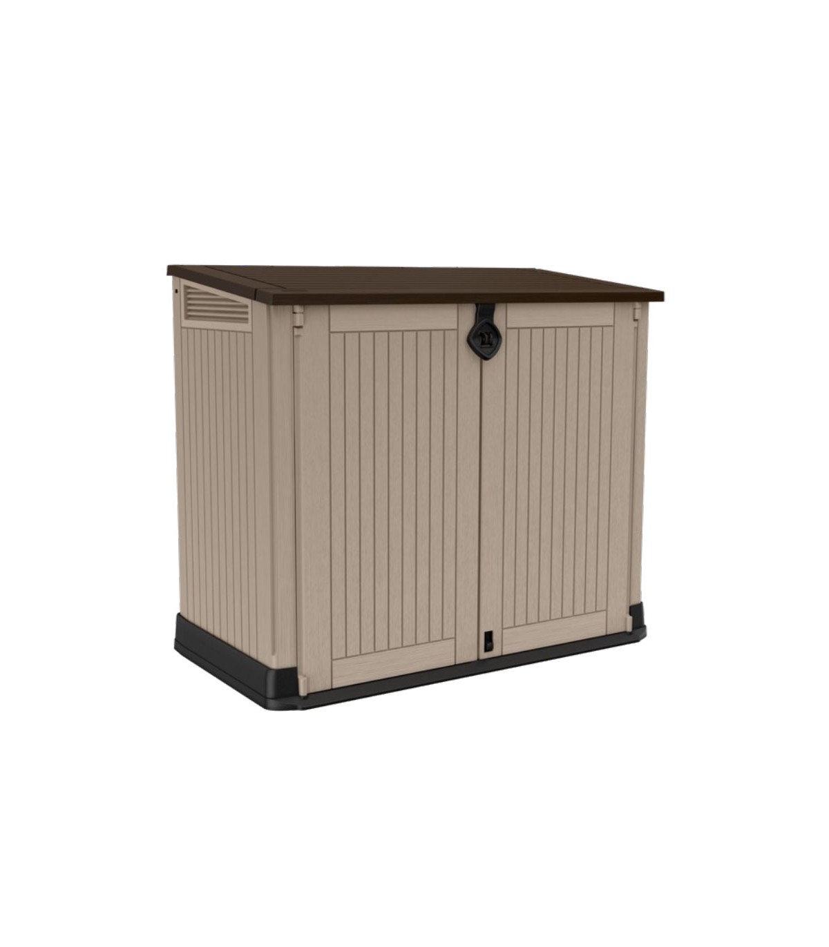 Para interior o exterior. Polipropileno inyectado gran resistencia. Hasta 880 litros. Dispone rejilla ventilación. Posibilidad cierre con candado. Color beige.
