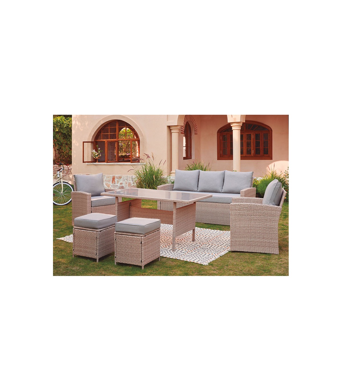 Estructura acero acabado con pintura lacada y ratán sintético.