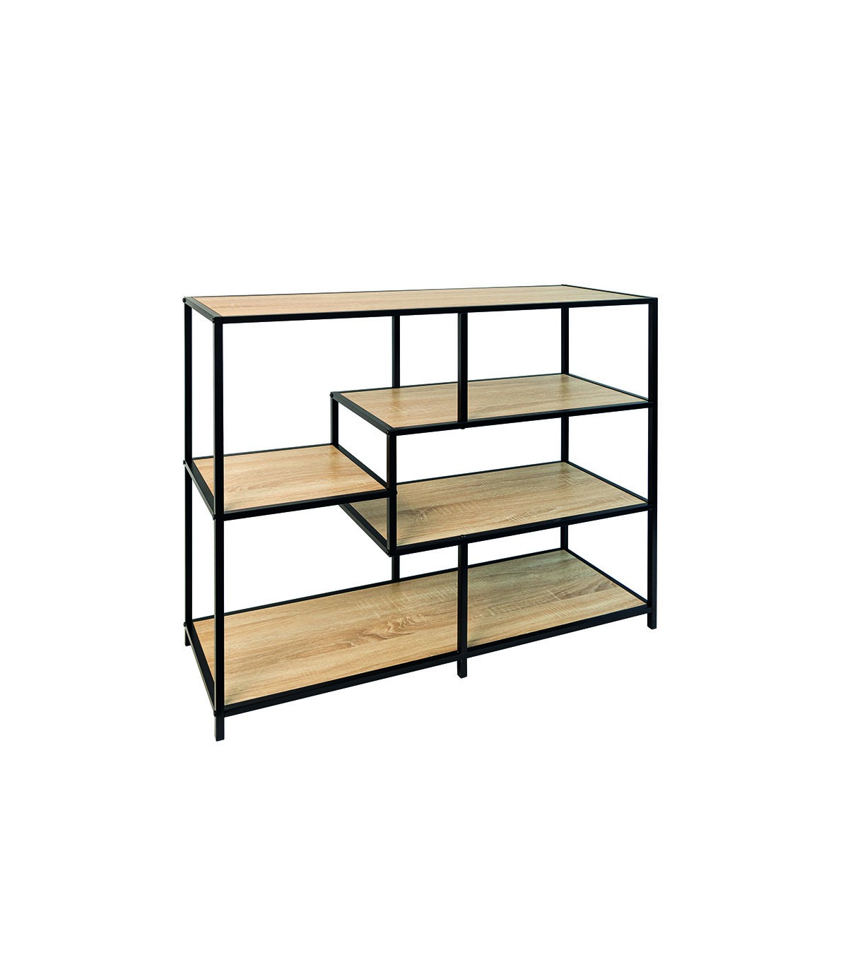Acero lacado negro y madera MDF. Alta resistencia con recubrimiento melamínico y estructura de acero pintado.