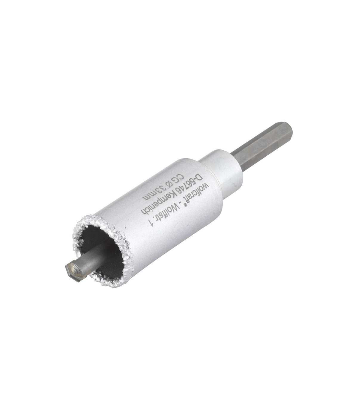 Corona de perforación recubierta de carburo de tungsteno para taladros en paredes de ladrillo y piedra (como ladrillo de piedra pómez, hormigón celular o piedras blandas y de dureza media similares). Con adaptador y broca centradora (ø 8 mm), preinstalados para el uso inmediato.