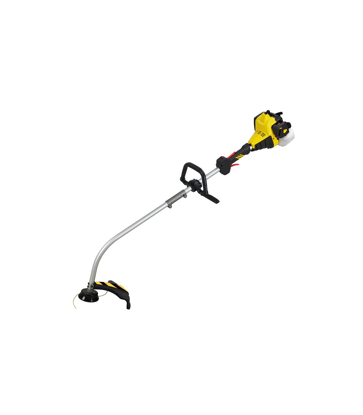 Cortabordes con motor de gasolina 2T de bajas emisiones, de 25,4 cc y 0,9 CV, con cebador para un arranque fácil. Transmisión partida para disminuir el espacio necesario para almacenamiento y transporte. Empuñadura de alto grip con softouch y manillar delta que permite mayor control de la máquina para acceder a los lugares más complicados.