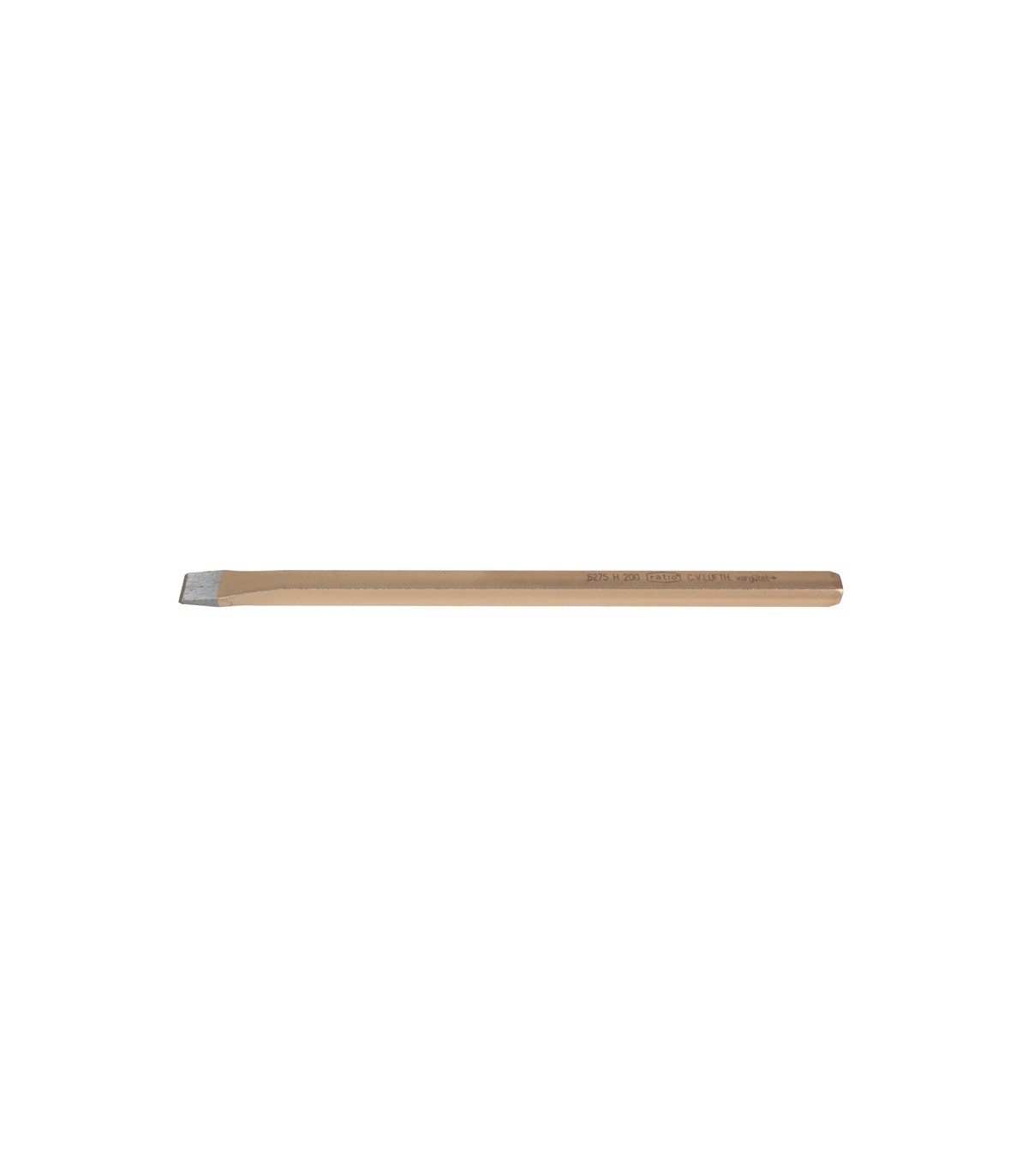 Cuerpo acero templado aleación especial. Cabeza de impacto tratada para evitar esquirlas y formación de rebabas. Cuerpo lacado y capa protectora de barniz transparente.