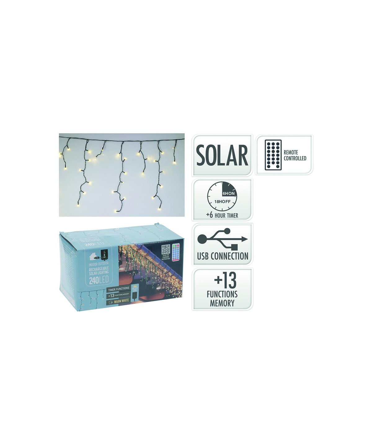 CORTINA 240 LED SOLAR LUZ BLANCA CALIDA