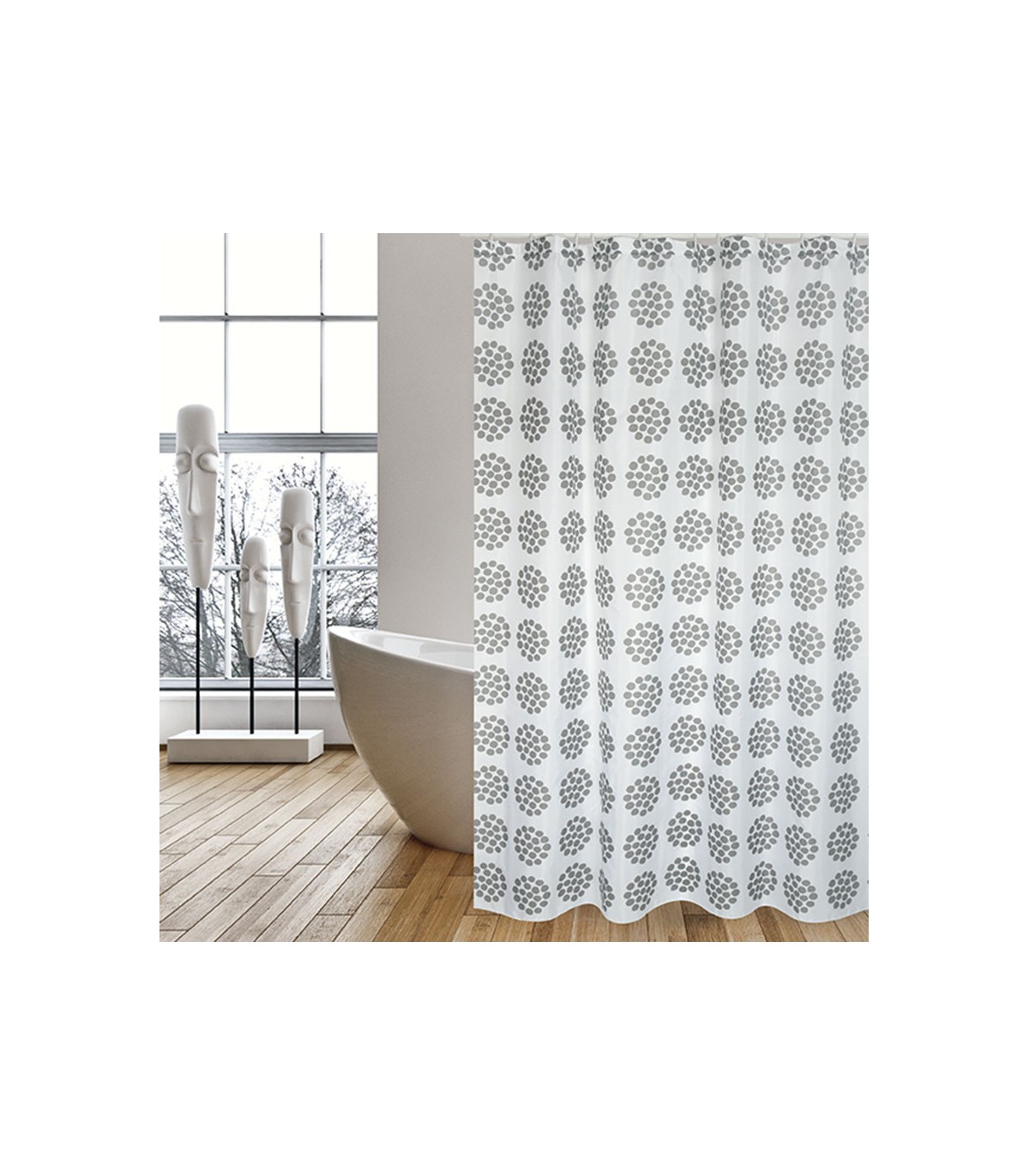CORTINA BAÑO POLIEST.180X200 BEGONIA GRI
