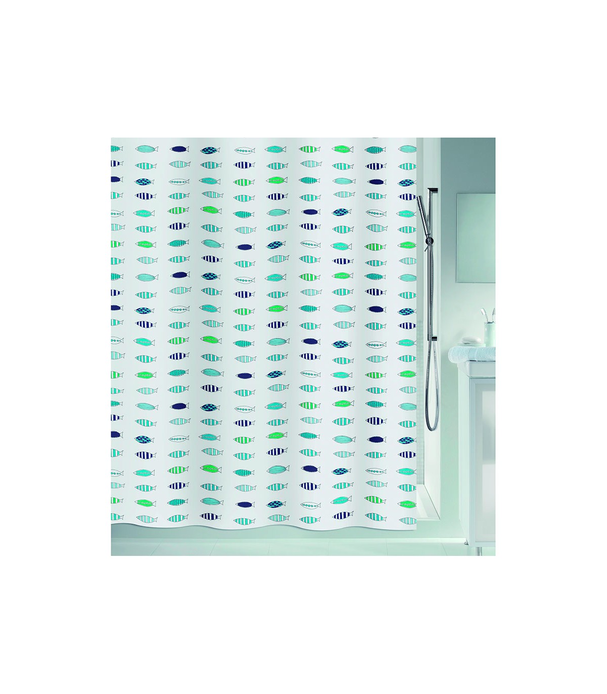 100% poliéster. 180xh.200 cm. Ojales reforzados. 12 anillas incluidas. Tela impermeable lavable máx 30º. Fabricado en España.