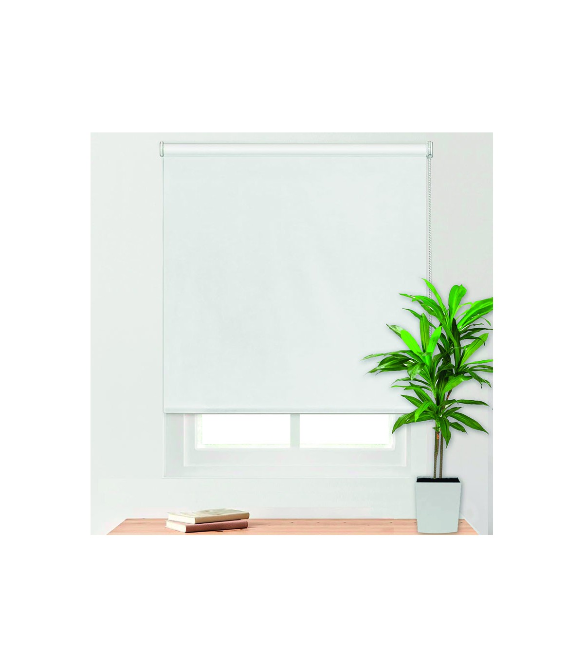 Fabricada en tejido translúcido (100% poliester). Instalación sencilla a pared o a techo. De muy fácil limpieza con un paño húmedo. Accionamiento a cadena. Color natural.