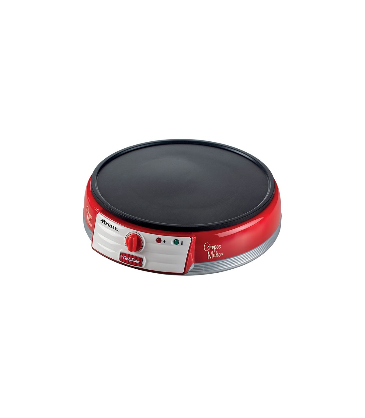 Prepara tortitas, crepes y pancakes. Termostato regulable y luz indicadora de temperatura elegida. Incluye 2 espátulas de madera.