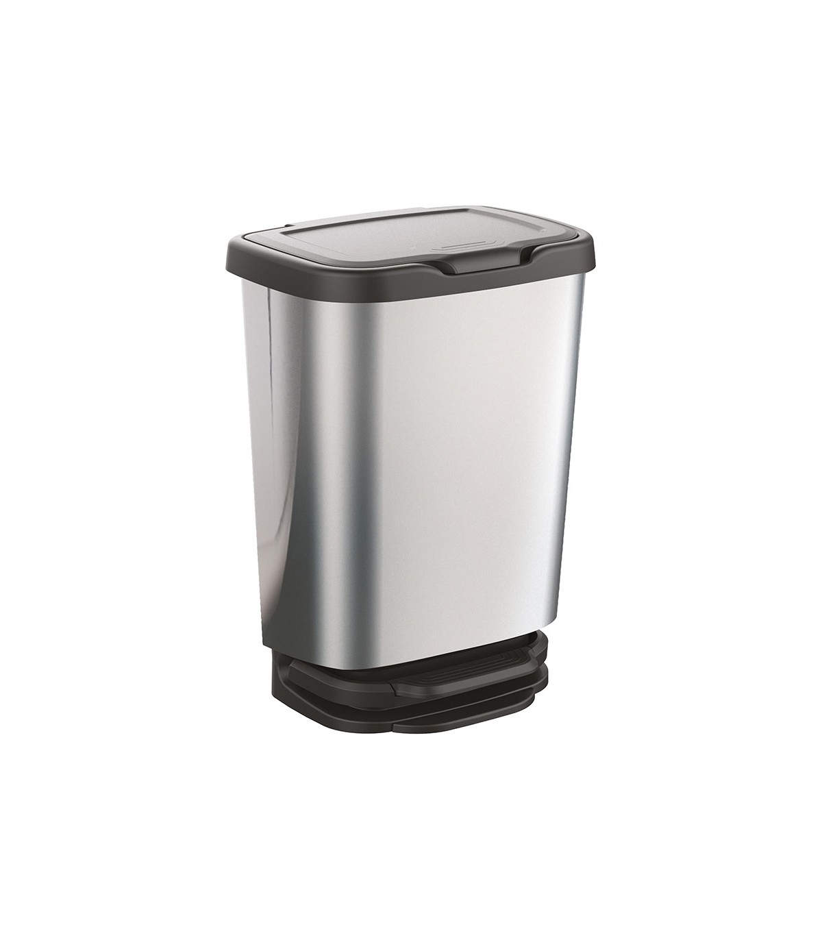 Plástico acabado exterior cromado con detalles en negro. Con cierre amortiguado.