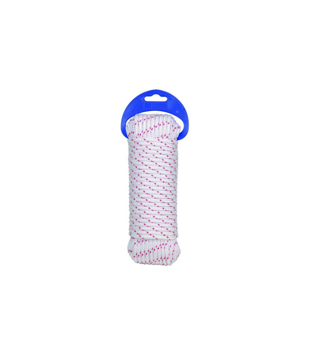 Color blanco. 100% poliéster alta tenacidad, trenzada con alma. Aplicaciones: Especial arranque de motores, camping, manualidades.