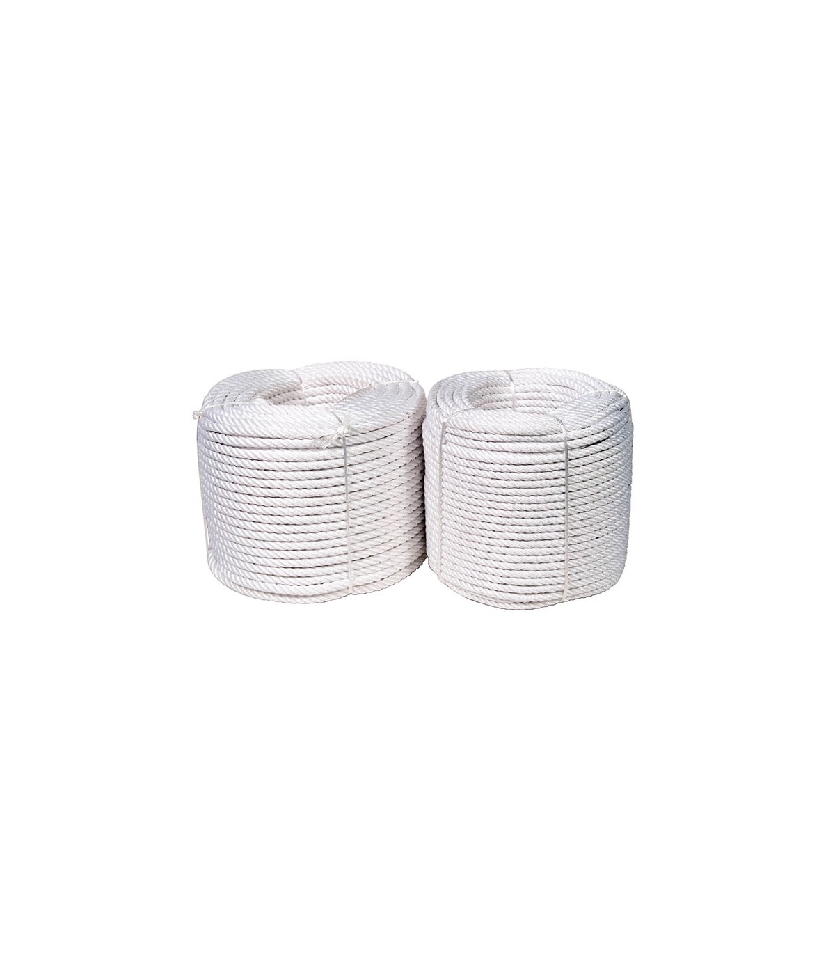 Bobina. Color blanco. Fibra suave y flexible, buena resistencia al roce, buena capacidad de agarre. Aplicaciones: Agricultura, ganadería, remolques, pesca, náutica, decoración, tracción.