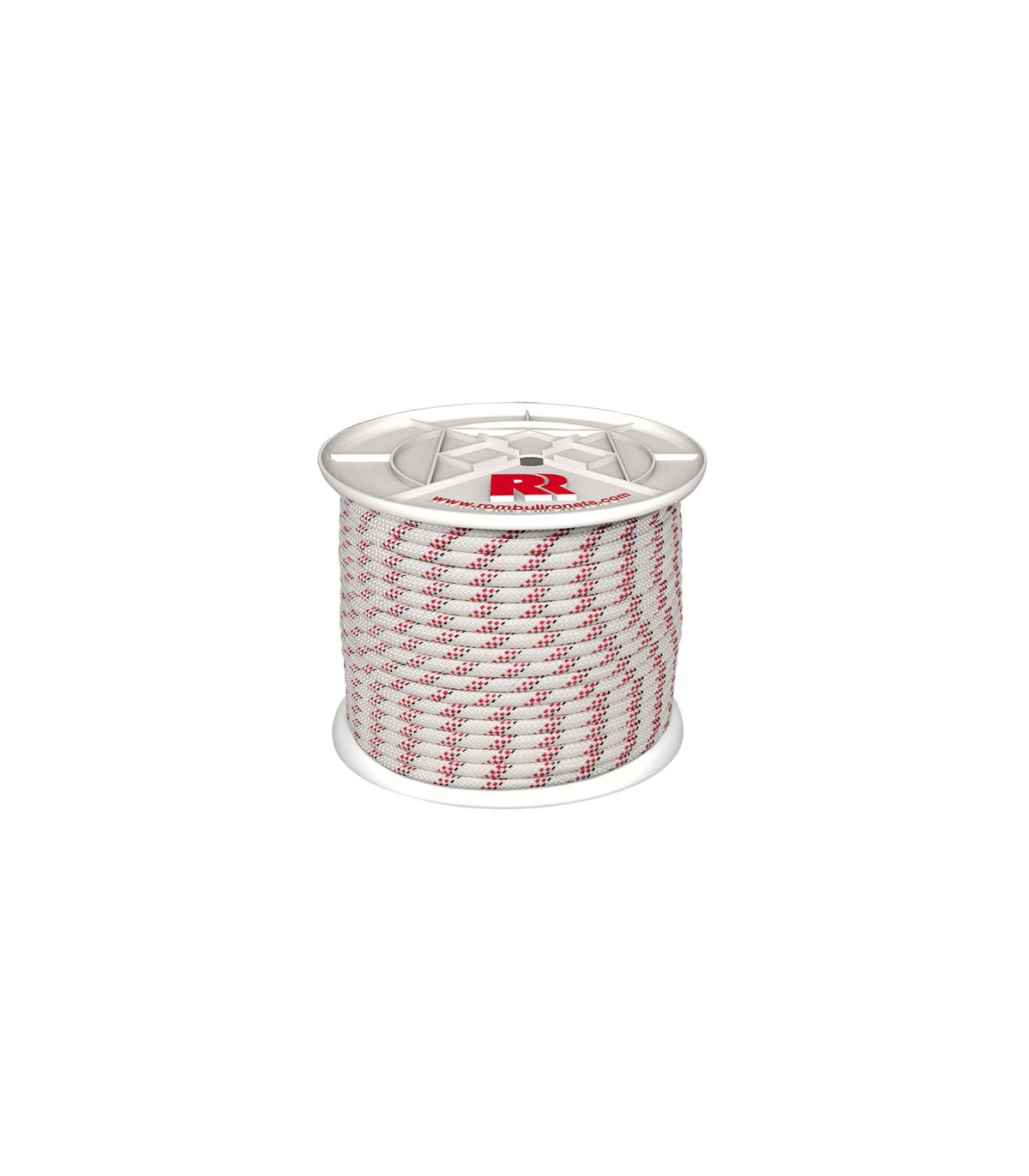 Bobina. Color blanco. Camisa poliéster alta tenacidad, protección solar, interior material textil. Trenzado con alma. Fibra suave y flexible. Aplicaciones: Toldos, decoración, trabajos manuales, trabajos con poleas, tracción.