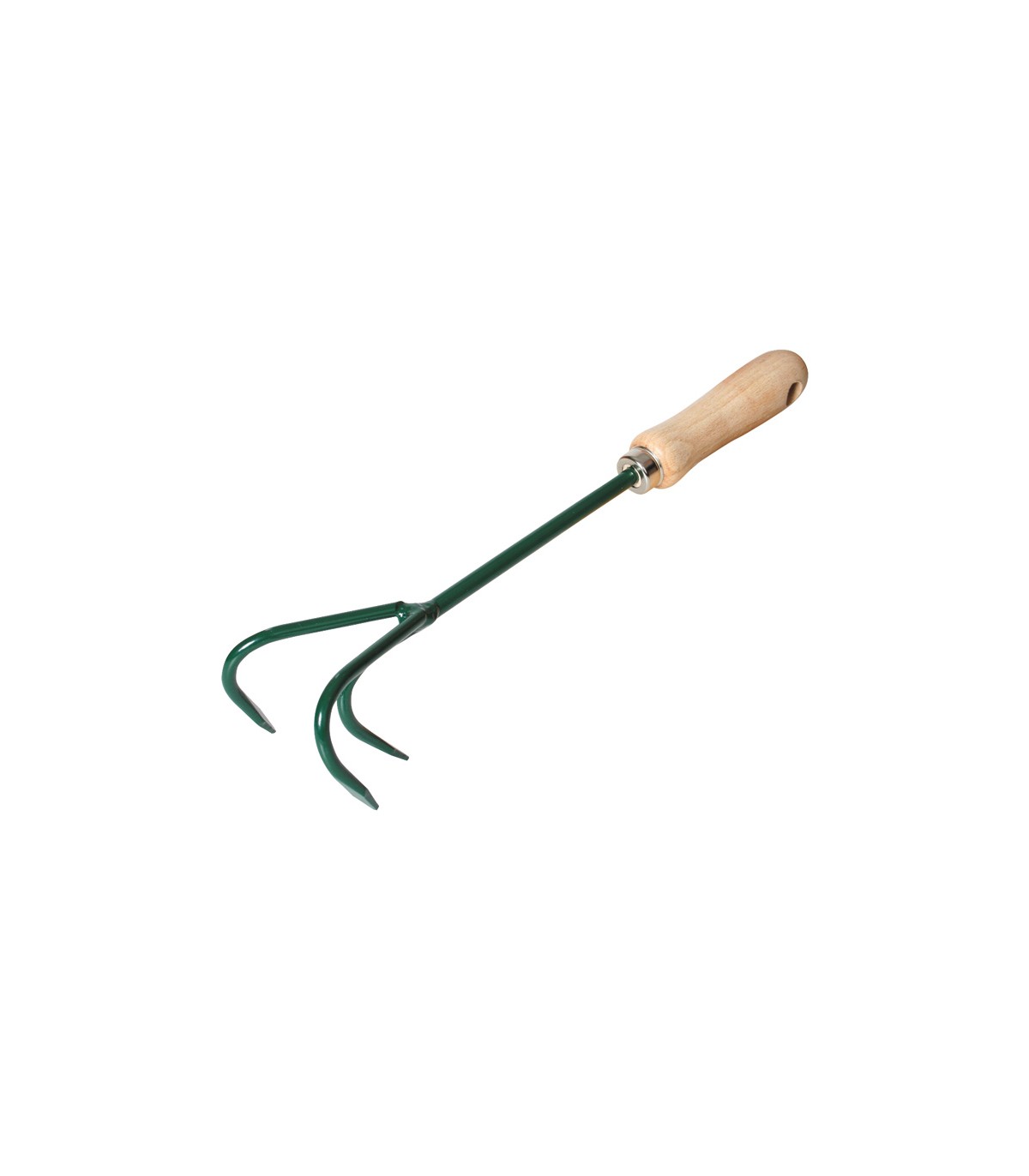Acero pintado epoxi. Mango madera barnizada fijado con virola metálica.