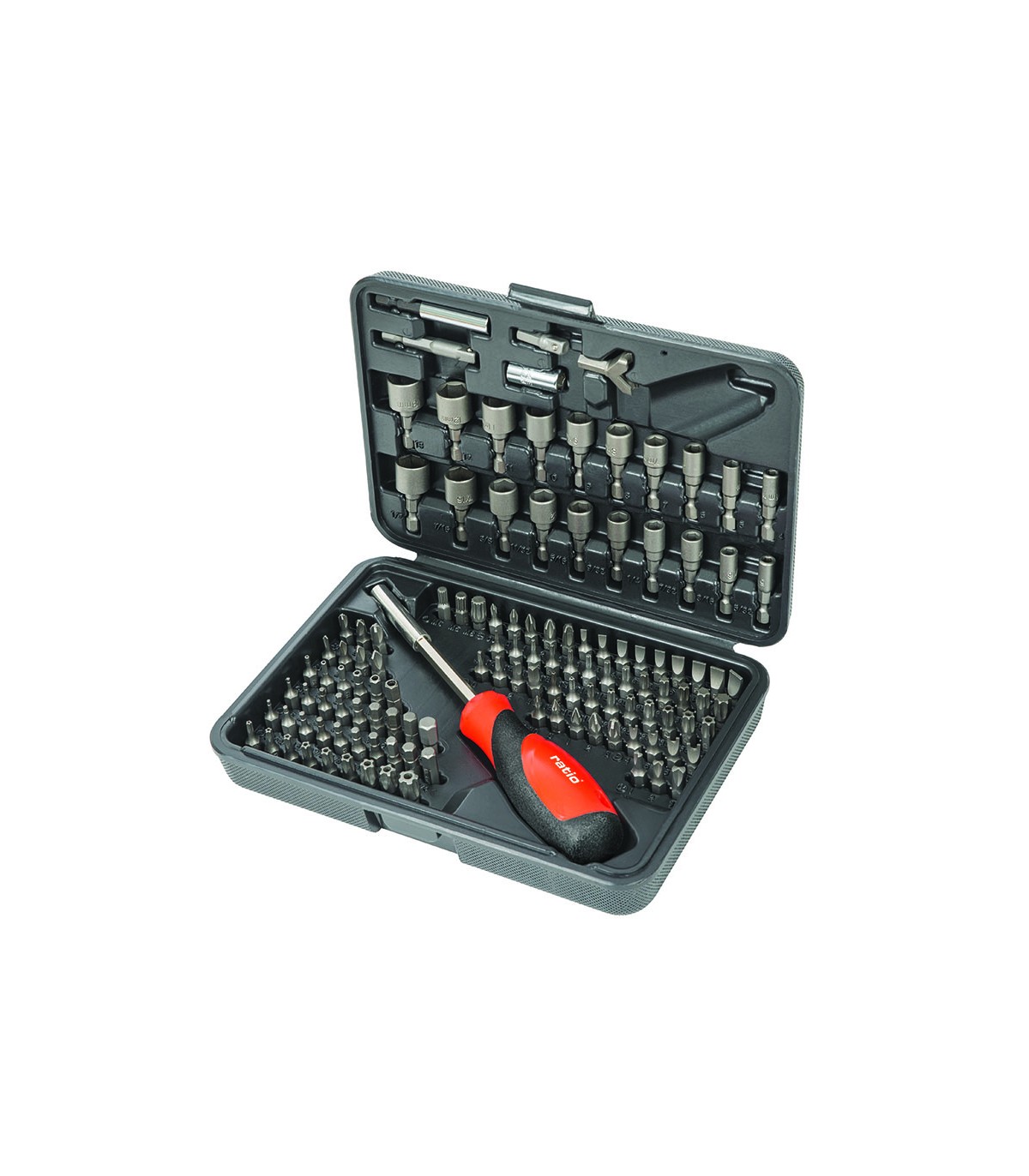 Acero cromo-vanadio. Destornillador con mango ergonómico antideslizante. Estuche 122 accesorios.