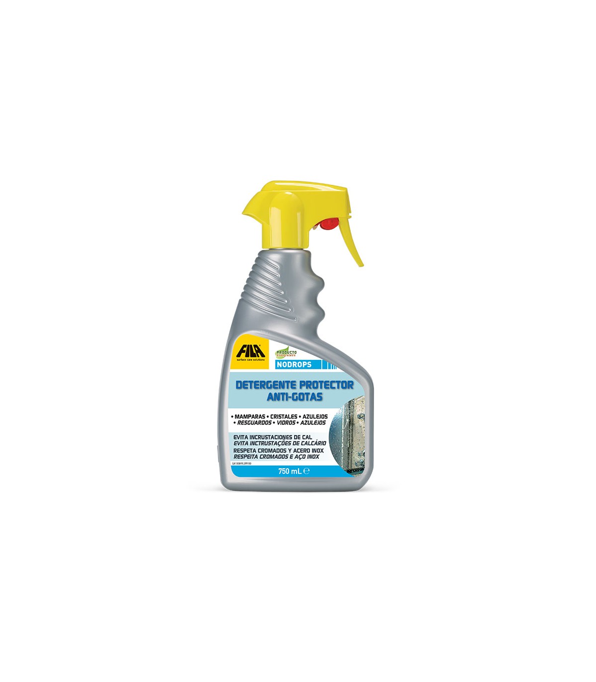 Limpia, protege, evita gotas, cercos cal. Superficies hidrófilas: el agua desliza sin dejar marcas. Fórmula ecológica y no ácida. Ideal mamparas, grifos, acero, plexiglass, espejos, gresite.con pulverizador.