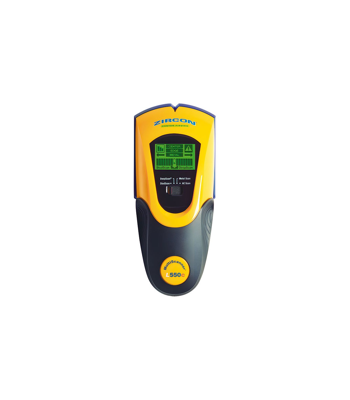 Escáner de pared multifuncional con pantalla ColorTrip. Tono sonoro y puntero Led SpotLit identifican claramente el objetivo. Detección de cables eléctricos sin aislamiento ocultos en paredes y techos hasta 50 mm de profundidad. Detecta acero hasta 76 mm, metales no ferrosos y madera hasta 38 mm de profundidad. Indica los bordes y centro de las vigas.