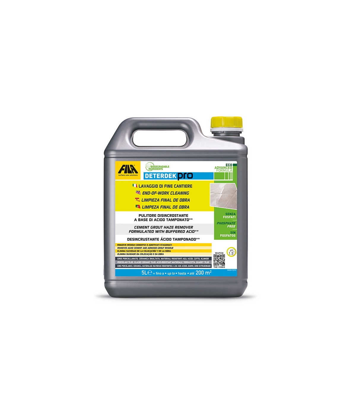 Detergente multiusos, materiales resistentes ácidos. Elimina restos obra. Según dilución, desincrusta, limpia a fondo. Rendimiento: 20/40 m² litro.