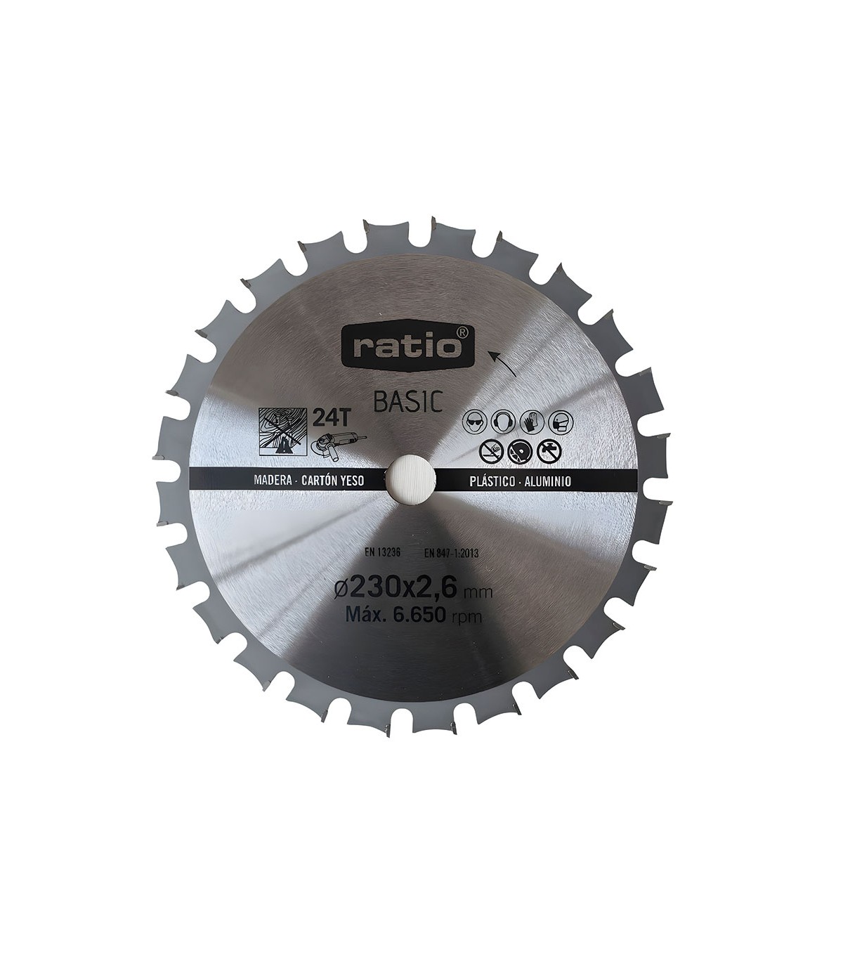 Para cortar madera, plástico, cartón yeso y aluminio. Disco de carburo tungsteno con pastilla de metal duro. No apto para madera con clavos. Norma EN 13236 y EN 847-1 : 2013.