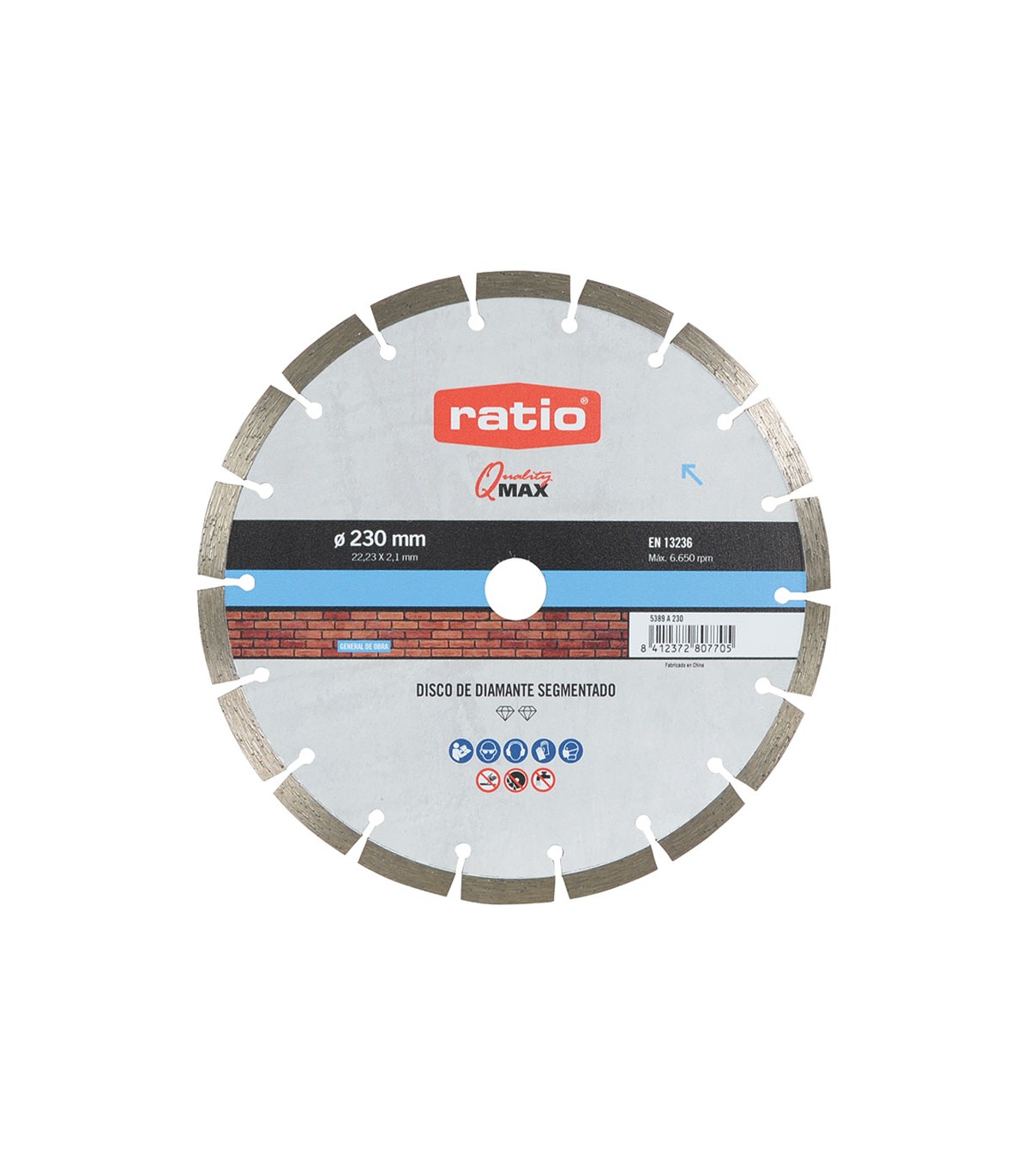 Soldadura sinterizado. Perfil segmentado. Segmento 10 mm. Disco corte de diamante, para ámbito de aplicación general de obra universal. CONFORME A: EN 13236.