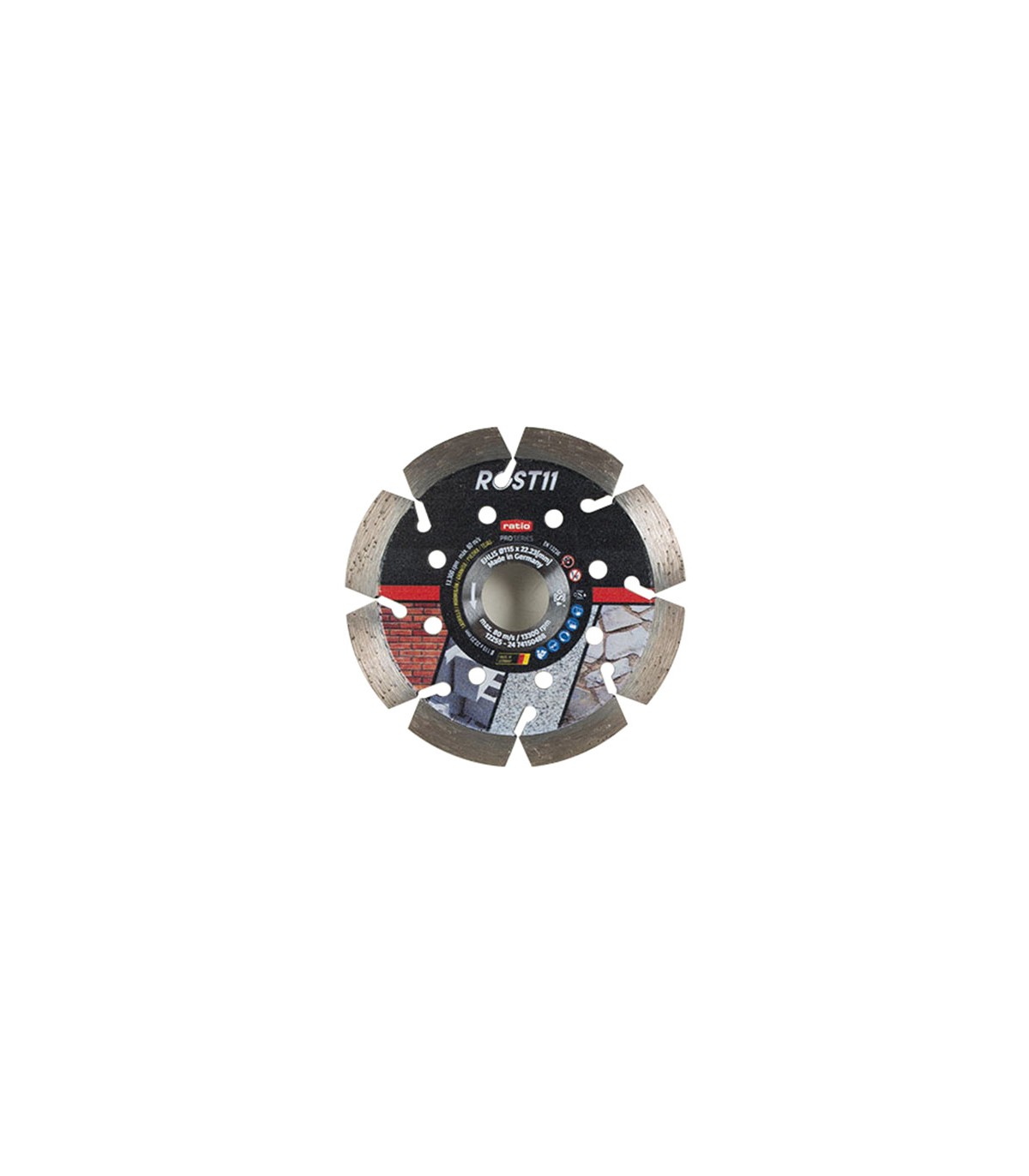 Soldadura láser. Perfil segmentado. Segmentos de 11 mm. Ámbito de aplicación para materiales: Hormigón armado, granito, piedra natural, pórfido, teja. Uso ocasional en hormigón reforzado, hormigón lavado, mampostería, ladrillo, cuarcita, caliza, travertino. OSA conforme a EN 13236.