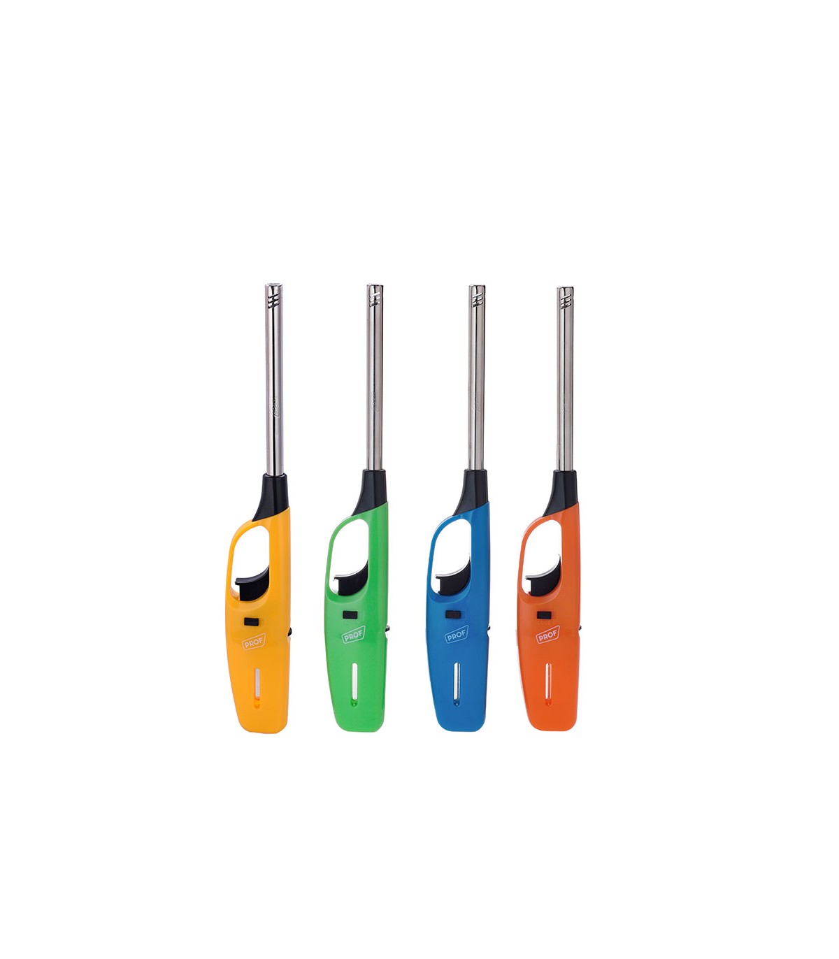 Gas recargable. Llama regulable. Display 16 unidades colores surtidos.