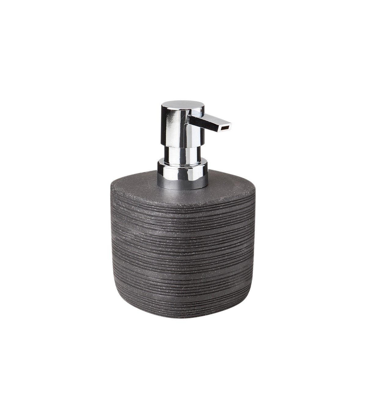 Poliresina rayada gris oscuro, combinada con bambú y partes cromadas.