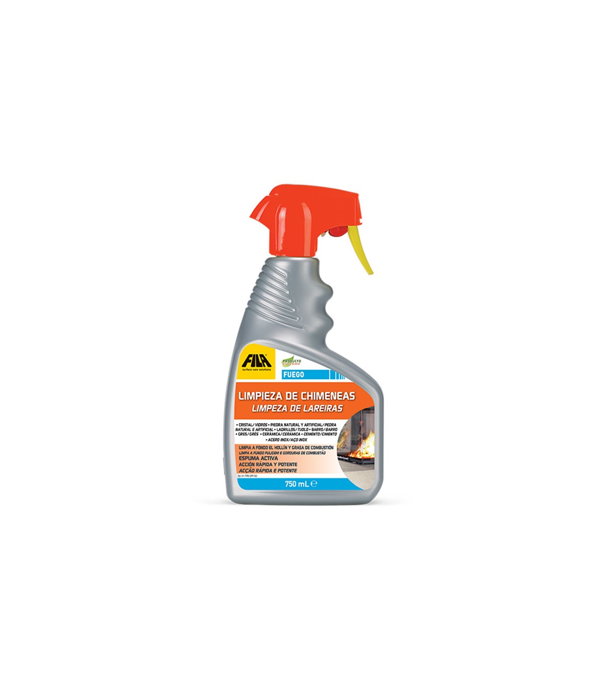 Elimina hollín, grasa en chimeneas, hornos, parrillas. Espuma acción rápida, perfume agradable. Ideal cristal, piedra, barro, cerámica, cemento y acero inox. Biodegradable.
