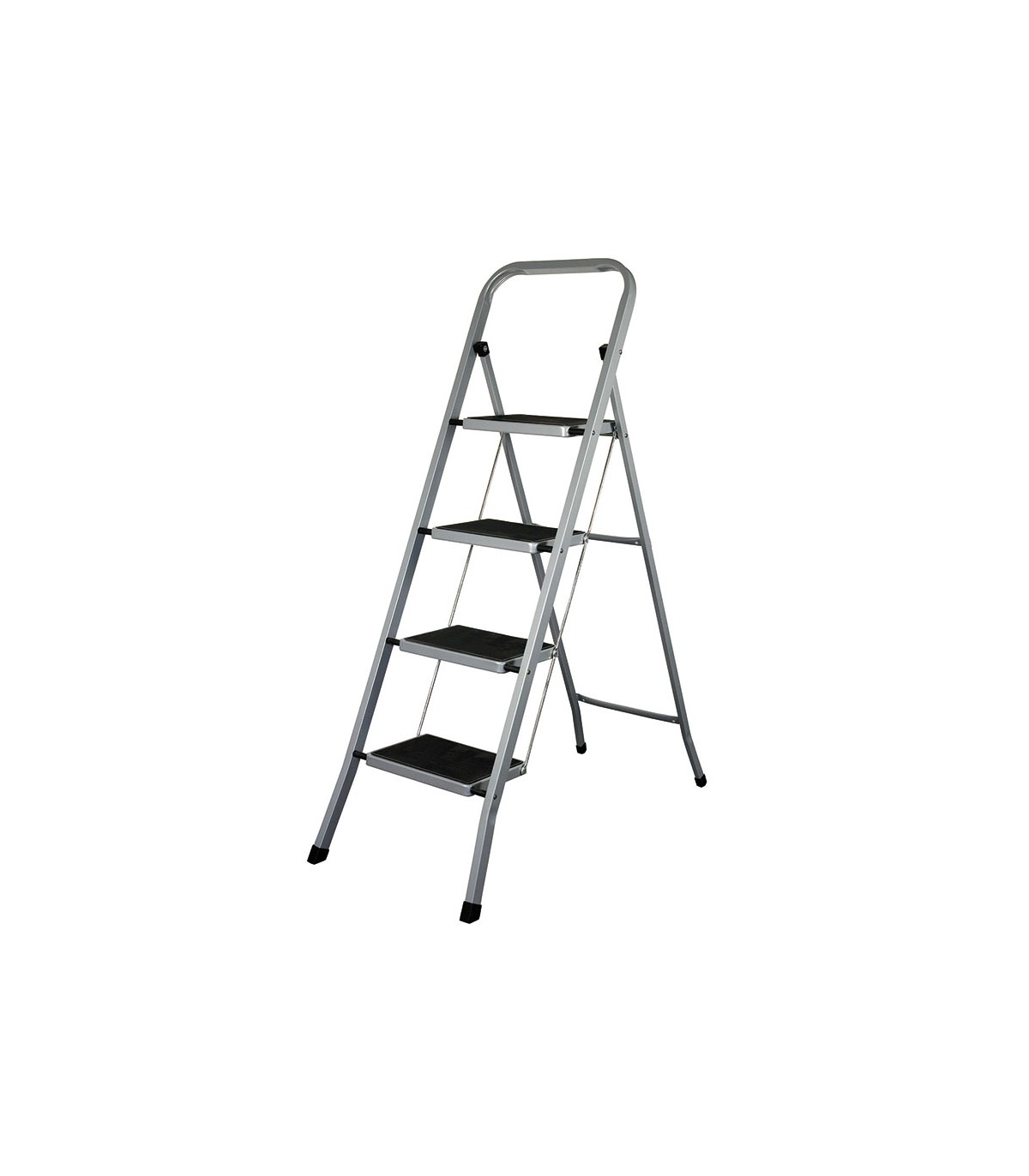 Tubo cuadrado de acero. Sistema antiapertura. Plataforma de acero con alfombrilla antideslizante. 30x20 cm. Contera con relieves. Norma EN 14183.