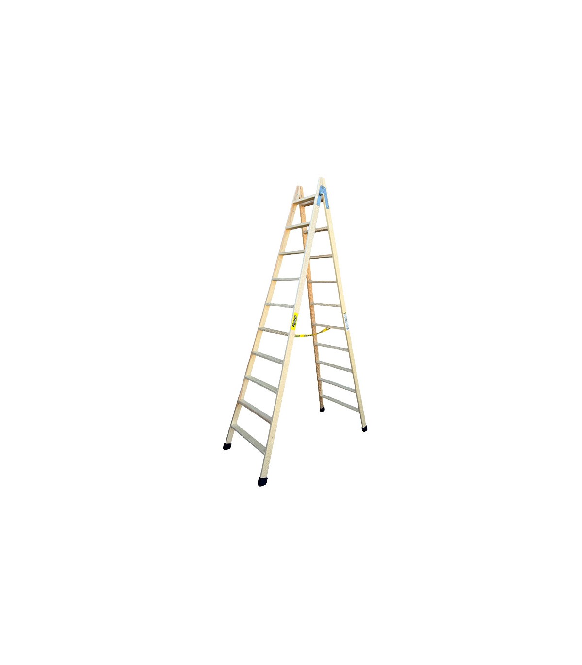 Especial pintores y electricistas. Peldaños anchos 6 cm. Montantes sección piramidal. Sistema cinta antiapertura. Incluye tacos goma antideslizantes. Gancho auxiliar. Peso máximo 150 kg.
