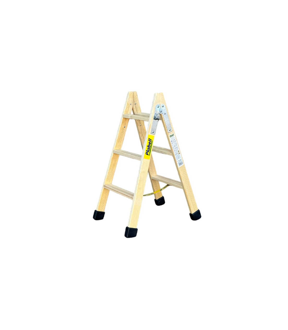 Especial pintores y electricistas. Peldaños anchos 6 cm. Montantes sección piramidal. Sistema cinta antiapertura. Incluye tacos goma antideslizantes. Gancho auxiliar. Peso máximo 150 kg.