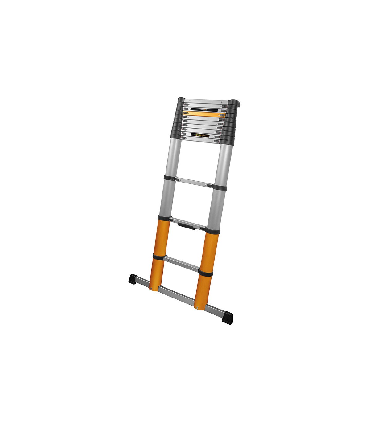 Aluminio ligero. Cumplen con los últimos requisitos de seguridad europeos según EN-131. Pueden soportar hasta 150 kg de carga. Con cierre suave y antideslizante. Con nivelador inorporado para asegurar la estabilidad de la escalera.