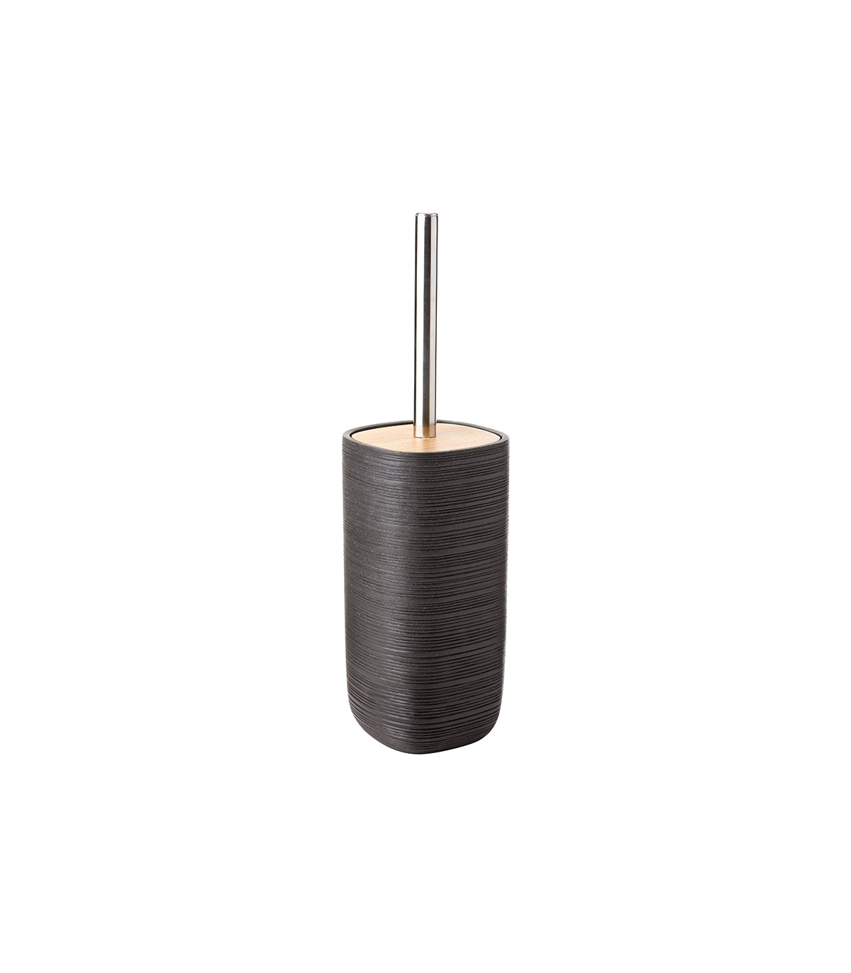 Poliresina rayada gris oscuro, combinada con bambú y partes cromadas.