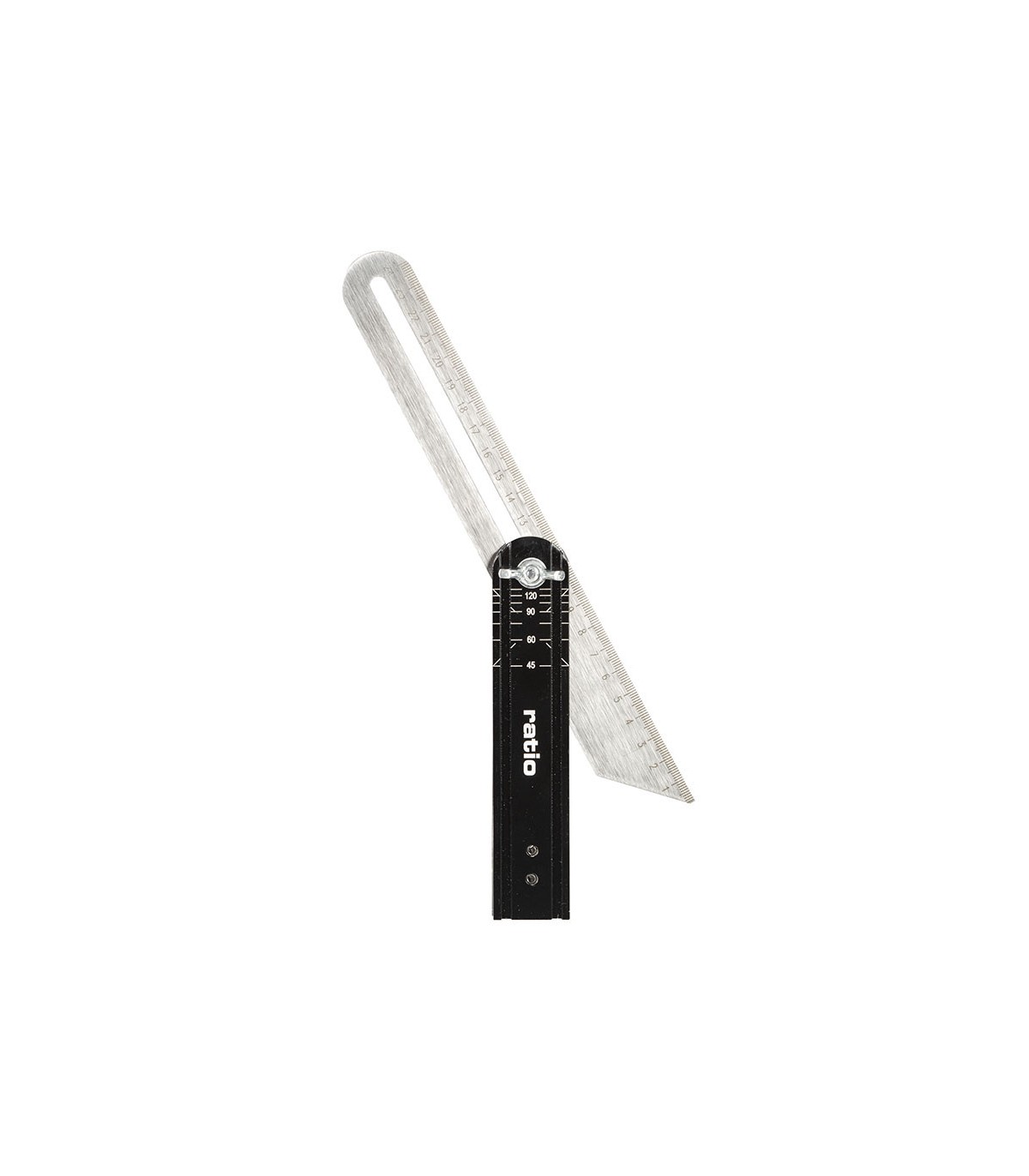 Acero inox SS420. Mango en aleación de aluminio color negro anodizado. Graduación en mm. Cota de ángulos ajustable de forma variable y fijable mediante tuerca palomilla. Traslación de los ángulos fijados.