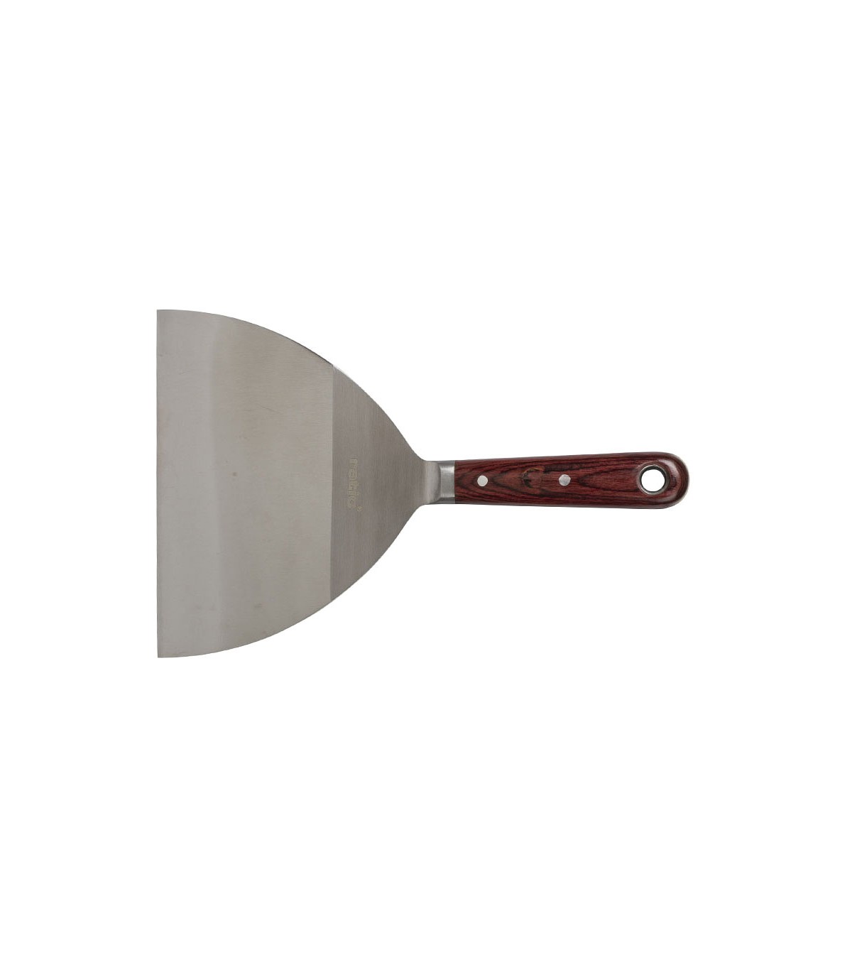 Hoja en acero inox flexible y pasante hasta el mango. Mango madera de 105 mm largo. Espesor hoja: 1,5 ~ 0,5 mm.