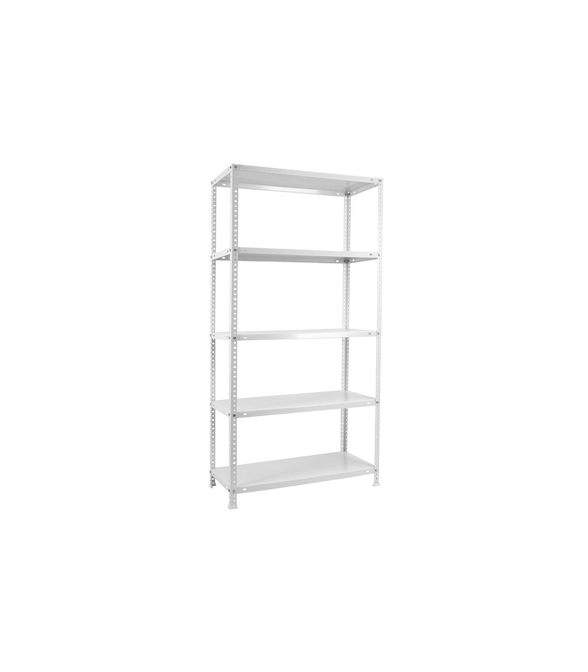 5 estantes. Montaje con tornillos, No se tambalea y no tiene aristas de corte. Fabricado en España. Montaje rápido. Capacidad de carga: 100 kg/estante.