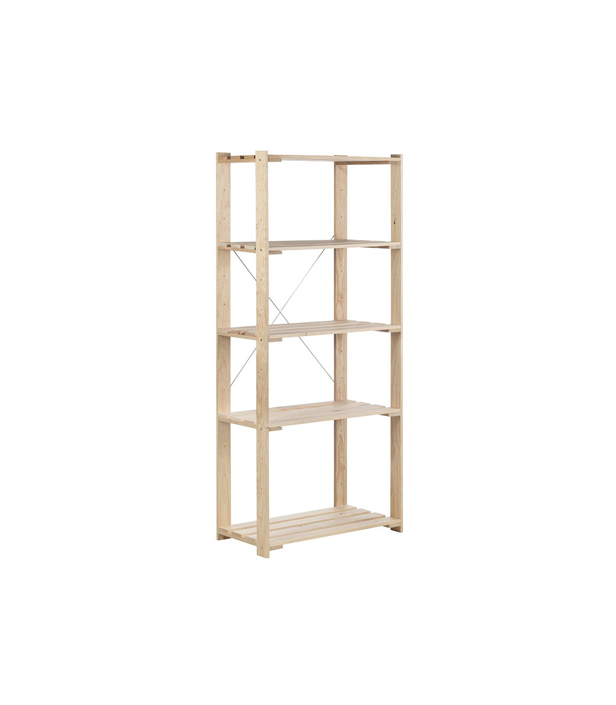 Estantería pino macizo. Grosor 15 mm. Baldas alturas regulables. Peso máximo 75 kg. Fijación pared incluída. Madra certificada.