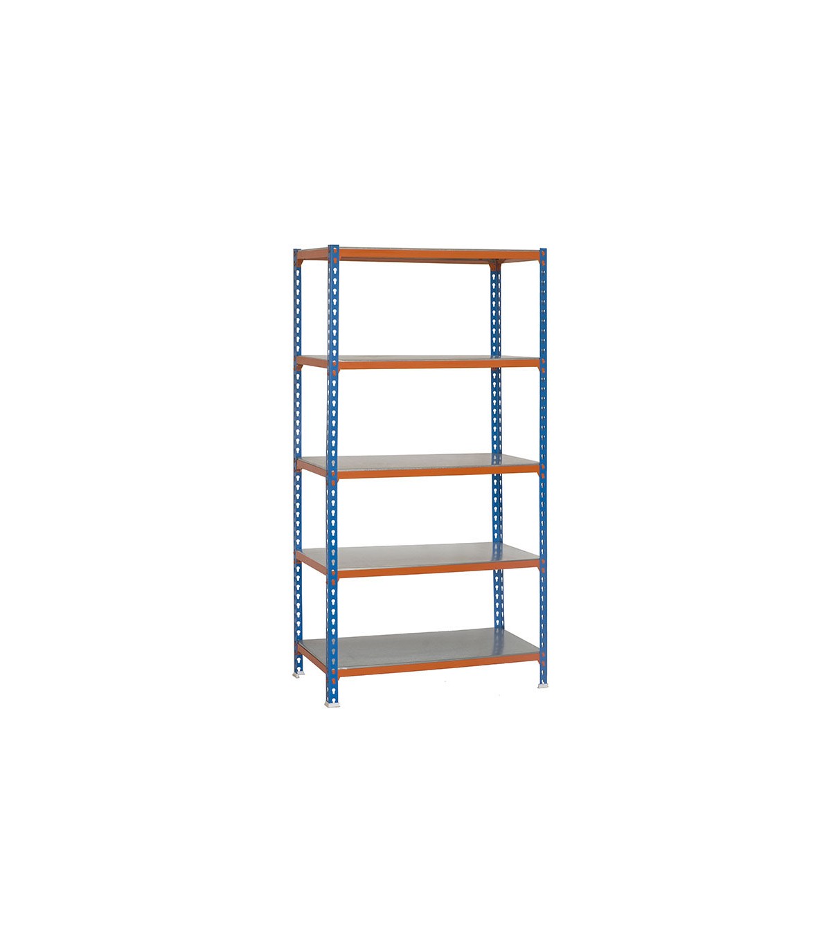 5 estantes. Sin tornillos. No se tambalea, es rígida y no necesita anclaje a la pared. Incluye. 4 pies de plástico. Bandeja acero galvanizado. Permite colocar la bandeja en 3 posiciones.. Capacidad de carga: 150 kg/estante.